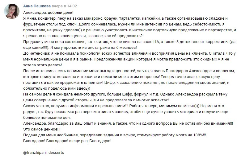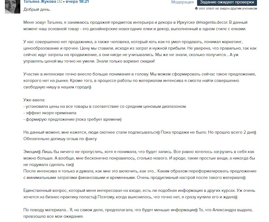 Мои ученики добиваются отличных результатов, несмотря на то, что работают в совершенно разных сферах: интернет-магазины, декораторы, организаторы свадеб, флористы, handmade, бухгалтеры, юристы, дизайнеры, стилисты, тренеры и психологи, кондитеры и т.д.